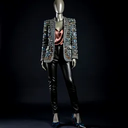 Embellished Blazer Silk Camisole Leather Pants Des