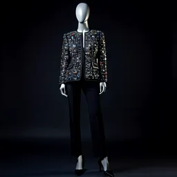 Brocade Blazer Silk Blouse Velvet Pants Crystal Ea