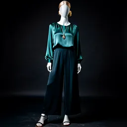Satin Wrap Top Leather Pants Embellished Pumps Des