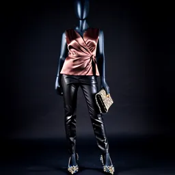 Leather Leggings Silk Blouse Embellished Pumps Des