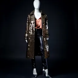 Sequin Trench Coat Silk Camisole Leather Pants Met