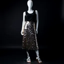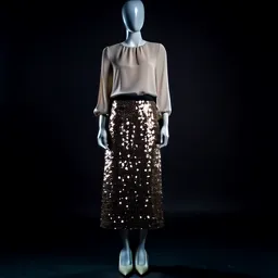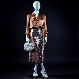 Sequin Midi Skirt Silk Blouse Strappy Heels Crysta