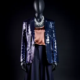 Sequin Blazer Silk Tank Top Wide Leg Pants Crystal