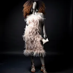 Feathered Skirt Silk Camisole Strappy Sandals Crys