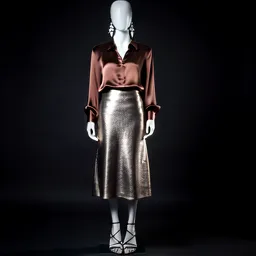Metallic Midi Skirt Satin Blouse Strappy Heels Cry