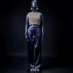 Beaded Crop Top Silk Pants Crystal Earrings Embell
