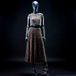 Satin Slip Skirt Sequin Top Strappy Heels Beaded C