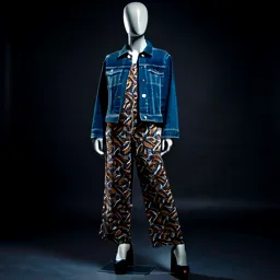 Printed Jumpsuit Denim Jacket And Block Heels