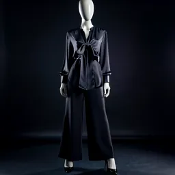 Tie Front Blouse Wide Leg Pants And Pumps