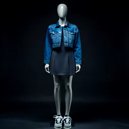 Cropped Denim Jacket Mini Dress And Sneakers