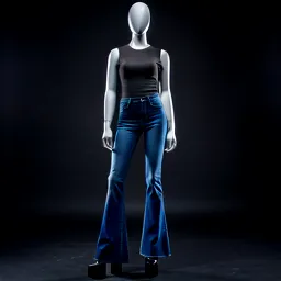 Flared Jeans Fitted Top And Block Heels