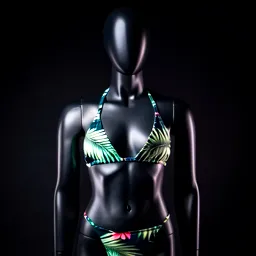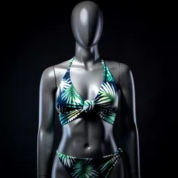 Plunge Neck Bikini With Mesh Paneling And A Palm L