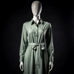 Sage Green Button Down Midi Dress With Waist Tie