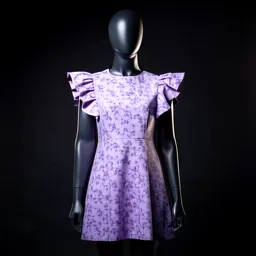 Lilac Floral Print Mini Dress With Ruffle Sleeves