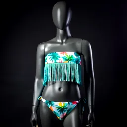 Fringed Bikini With A Bandeau Top And A Playful Pr