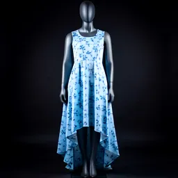Baby Blue Floral Print Maxi Dress With High Low He
