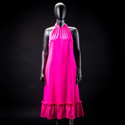 Hot Pink Halter Neck Midi Dress With Ruffled Hem