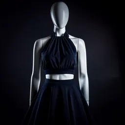 Cropped Halter Neck Dress With A Full Skirt