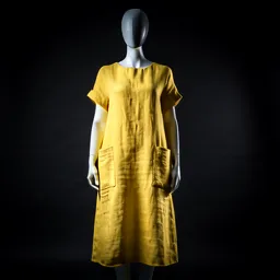 Yellow Linen Midi Dress With Pockets