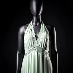 Light Green Halter Neck Maxi Dress With Lace Inser