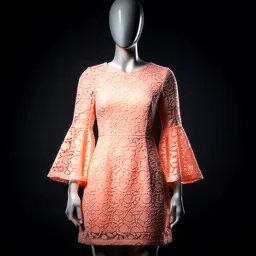 Peach Lace Mini Dress With Bell Sleeves