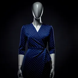 Navy Blue Wrap Dress With Polka Dots