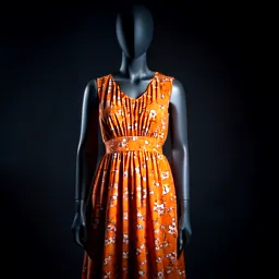 Orange Floral Midi Dress With Gathered Waist