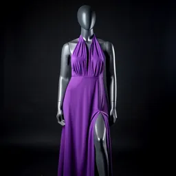 Purple Halter Neck Maxi Dress With Thigh High Slit