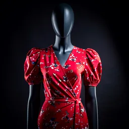 Red Floral Wrap Dress With Puff Sleeves