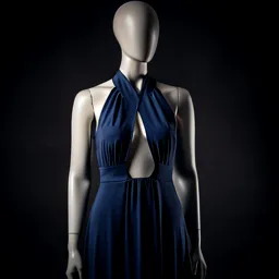 Navy Blue Halter Neck Midi Dress With Side Slit