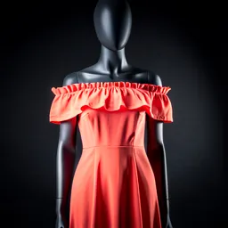 Coral Red Off Shoulder Midi Dress With Ruffled Nec