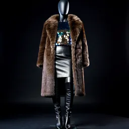 Fur Coat Sequin Top Leather Skirt Over The Knee Bo