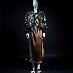 Embellished Bomber Jacket Silk Slip Dress Metallic
