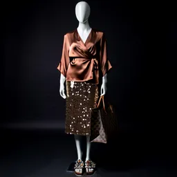 Silk Wrap Blouse Sequin Skirt Embellished Sandals