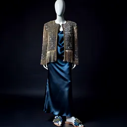Beaded Fringe Jacket Satin Slip Dress Embellished
