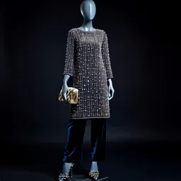 Beaded Tunic Velvet Pants Embellished Heels Design