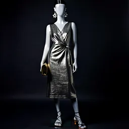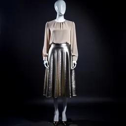 Metallic Midi Skirt Satin Blouse Strappy Heels Cry