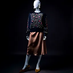 Embellished Sweater Silk Skirt Suede Pumps Pearl E