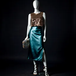 Sequin Midi Skirt Silk Blouse Strappy Heels Crysta