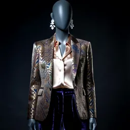 Brocade Blazer Silk Blouse Velvet Pants Crystal Ea