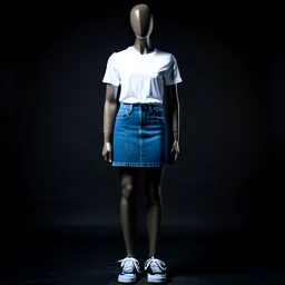 White T Shirt Denim Skirt And Sneakers