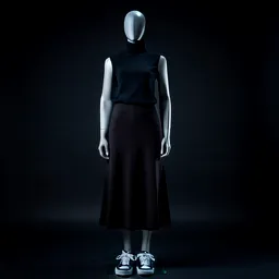Sleeveless Turtleneck Midi Skirt And Sneakers